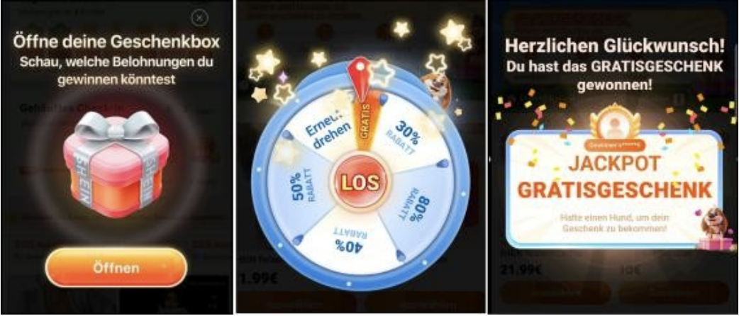 Die Verbraucherzentrale Bundesverband hat weitere gamifizierte Designs auf Shein untersucht. Elemente wie Glücksräder oder Überraschungsboxen, bei denen man Rabatte oder weitere Punkte gewinnen kann, scheinen nur simuliert zu sein und nicht nach dem Zufallsprinzip zu funktionieren. Dies deckt sich mit Untersuchungen des Europäischen Verbraucherverbands. Laut diesem ist es unklar, ob Meldungen wie „nur noch wenige Artikel verfügbar“ auch wirklich zutreffen oder einfach nur Verkaufstaktiken sind. Die Verbände fordern Shein auf, die Wahrhaftigkeit solcher Angaben zu belegen.